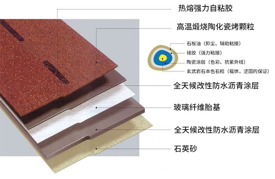 | 品名 | 產地 | 瀝青 | 載體 | 彩砂 | 特點 |
