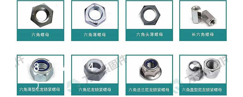 扣緊螺母的生產標準GB 805-88,滾花高螺母的生產標準GB 806-88,滾花薄螺母的生產標準 GB 807-88,小六角特扁細牙螺母的生產標準GB 808-88, 滾花薄螺母GB 807—88;小六角特扁細牙螺母GB 808—88。嵌裝圓螺母GB 809—88;小圓螺母GB 810—88;圓螺母GB 812—88;端面帶孔圓螺母GB 815—88;側面帶孔圓螺母GB 816—88;帶槽圓螺母GB 817—88;1型非金屬