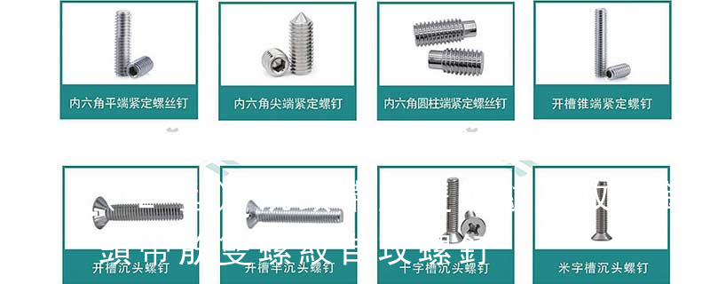 1)開槽普通螺釘多用于較小零件的連接。它有盤頭螺釘、圓柱頭螺釘、半沉頭螺釘和沉頭螺釘。盤頭螺釘和圓柱頭螺釘的釘頭強度較高,瑁在普通的部件連接上;半沉頭螺釘的頭部呈弧形,安裝后它的頂端略外露,且美觀光滑,一般用