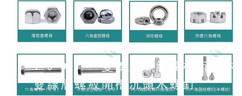 六角螺母 Hexagon nuts 方螺母-C Square nuts 六角頭螺釘 Hexagon screws 六角頭圓柱端 緊定螺釘 Hexagon set screws with full dog point 薄型方螺母-B Square nuts without bevel (pressed nuts)六角頭木螺釘 Hexgon hea