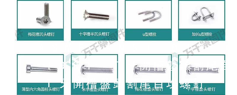 1.機螺釘 2.自攻螺釘 3.鉆尾螺釘 4.墻板釘 5.纖維板釘 6.木螺釘7.六角木螺釘 8.不脫出螺釘 9.組合螺釘 10.微型螺釘 11.家具螺釘 12.電子螺釘 13.鏈帶螺釘頭型:1.六角頭(hexagon head)2.六角頭法蘭面(hexagon head with