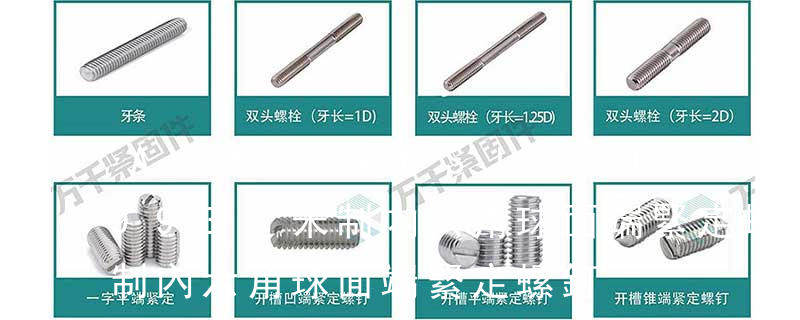 使用。帶一字槽的、內六角的則便于沉入零件。緊定螺釘末端根據使用要求的不同,一般最常用的有錐端、平端、圓柱端三種。錐端適用于硬度小的零件;使用無尖的錐端螺釘時,在零件的頂緊面上要打坑眼,時錐面壓在坑眼邊上。末端為平端