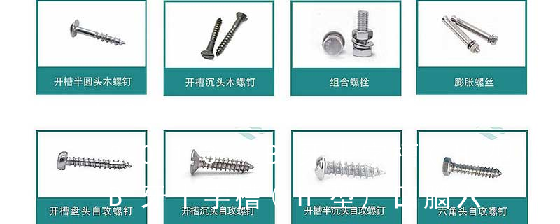 主要分類包括普通螺絲、機螺絲、自攻螺絲和膨脹螺絲三種。 有頭螺釘Cap screw 過去限于全牙的扣件。 六角頭螺釘Hex cap screw與大六角螺栓Hex bolt 顧名思義為頭部為六角型的外螺紋扣件,設計為使用扳手轉動。依照ASME B18.2.1標準,六 1)開槽普通螺釘多用于較小零件的連接。它有盤頭螺釘、圓柱頭螺釘、半沉頭螺釘和沉頭螺釘。盤頭螺釘和圓柱頭螺釘的釘頭強度較高,瑁在普通的部件連接上;半沉頭螺釘的頭部呈弧形,安裝后它的頂端略外露,且美觀光滑,一般用