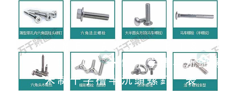 螺栓的頭部形狀也有很多,像六角頭的、方形頭的、圓頭的以及沉頭的等等,其中六角頭是比較常見的。2、按連接受力方式分 連接受力方式不同有不同的螺栓,主要分為普通螺栓和鉸制孔用螺栓。3、按螺紋的牙型分 螺栓螺紋主要有 1)十字槽盤頭自鉆自攻螺釘 2)十字槽沉頭自鉆自攻螺釘 3)十字槽半沉頭自鉆自攻螺釘,跟上面沉頭螺絲接近。4)六角法蘭面自鉆自攻螺釘 5)六角凸緣自鉆 自攻螺釘根據材質可分為:鋼材1022A,不銹鐵410,不銹鋼304