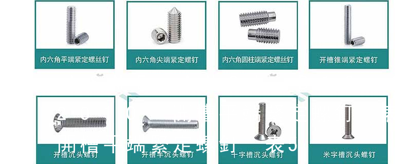 緊定螺釘 Slotted set srews with full dog point 開槽平端 緊定螺釘(半牙) Slotted set srews with chamfered end 小六角特薄細牙 螺母 Pip nuts with thread 外舌止動墊圈 External tap 小墊圈 (用于圓柱頭螺釘)