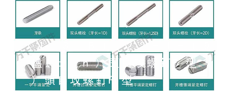 沉頭內(nèi)六角螺釘(平杯)、半圓頭內(nèi)六角螺釘(圓杯)、十字槽盤(pán)頭機(jī)螺釘、十字槽沉頭機(jī)螺釘、十字槽大扁頭機(jī)螺釘、十字槽盤(pán)頭自攻釘、十字槽沉頭自攻釘、十字槽大扁頭自攻釘、全牙絲桿(牙條)、六角螺母、法蘭 自切自攻螺釘有以下幾種型式:十字槽盤(pán)頭自切自攻螺釘,十字槽沉頭自切自攻螺釘。十字槽半沉頭自切自攻螺釘,六角頭自切自攻螺釘。3、自擠自攻螺釘(自攻鎖緊螺釘)自擠自攻螺釘?shù)穆菁y一般為機(jī)螺紋,很少采用自攻螺紋。在扳擰