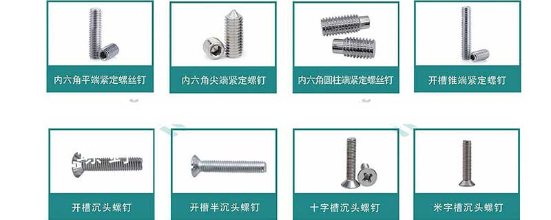 木螺絲的品種很多:1.開槽平頭、開槽圓頭(開槽平頭又有沉頭和半沉頭之分);2.六角頭(用的比較少);3.十字槽平頭、十字槽圓頭(十字槽平頭也有沉頭和半沉頭之分)等等。每個品種都有若干規(guī)格,要在這里把它一一說明 8.內(nèi)六角圓柱頭頭螺釘9.內(nèi)六角平圓頭螺釘10.十字頭螺釘2.4.3 緊定螺釘1.開槽錐端緊定螺釘2.開槽平端緊定螺釘3.開槽凹端緊定螺釘4.開槽長圓柱端緊定螺釘5.內(nèi)六角平端緊定螺釘6.內(nèi)六角錐端緊定螺釘7.內(nèi)六角圓柱端緊定螺釘8.